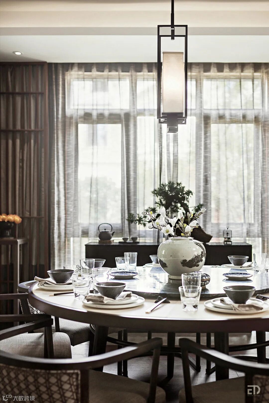看似平实的设计,含蓄里带着对中式美学的独到理解与思考,营造出一个融东方古意和当代生活方式的专属家宴空间。