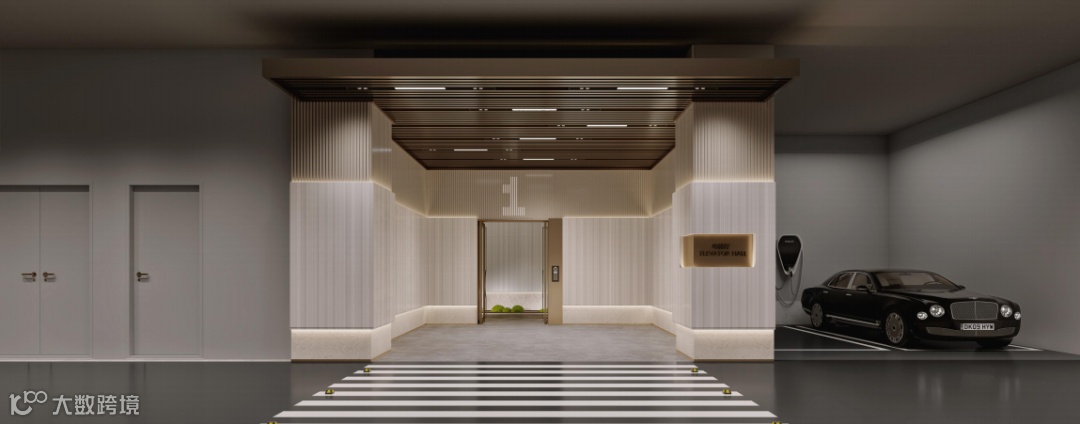 地下室泛大堂的设计,运用流线金属边框勾勒的造型,以精致化的美学处理,再次刻下优美的注脚。于设计而言,这一空间语言生动地表达出高品质住宅公区的独特气质。