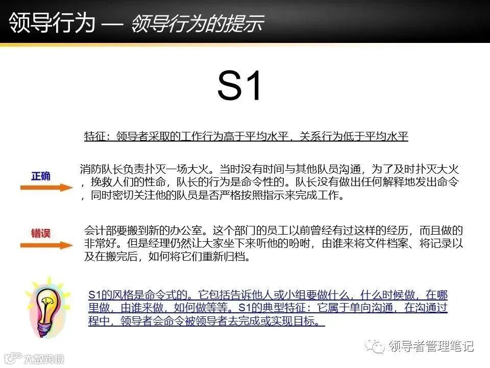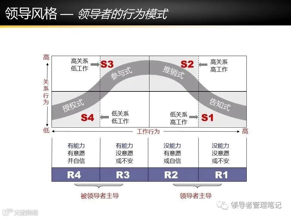 领导策略:S2推销式,解释决策并调解(如“为何采用A方案,因为….”)。