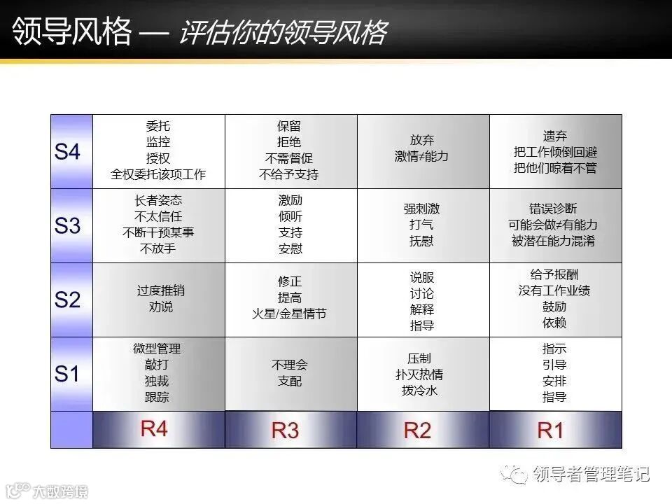 2. 四风格(S1-S4)与准备度(R1-R4)匹配表