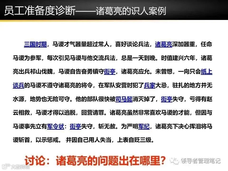诸葛亮诊断失误:误判马谡“知识丰富(R4)”,忽视“实战经验缺失(R2)”。