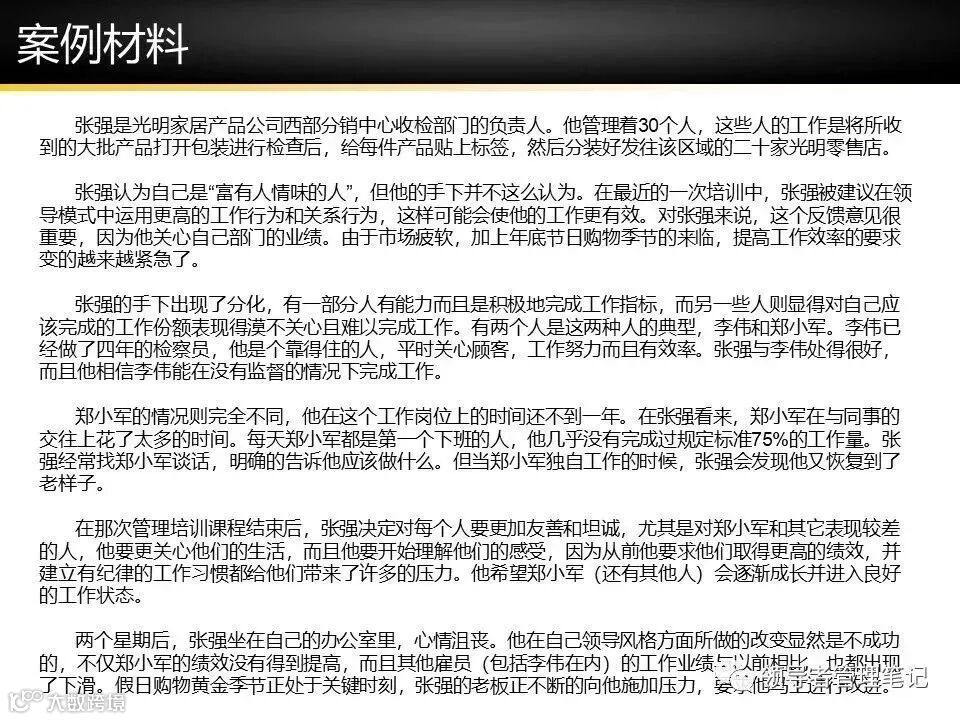 领导策略:S1告知式,明确分工(如“张三负责数据,李四负责文案”)。