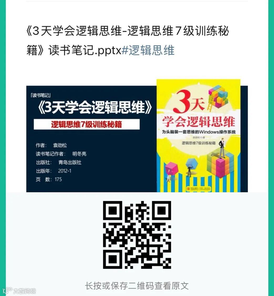 《3天学会逻辑思维-逻辑思维7级训练秘籍》读书笔记.pptx下载