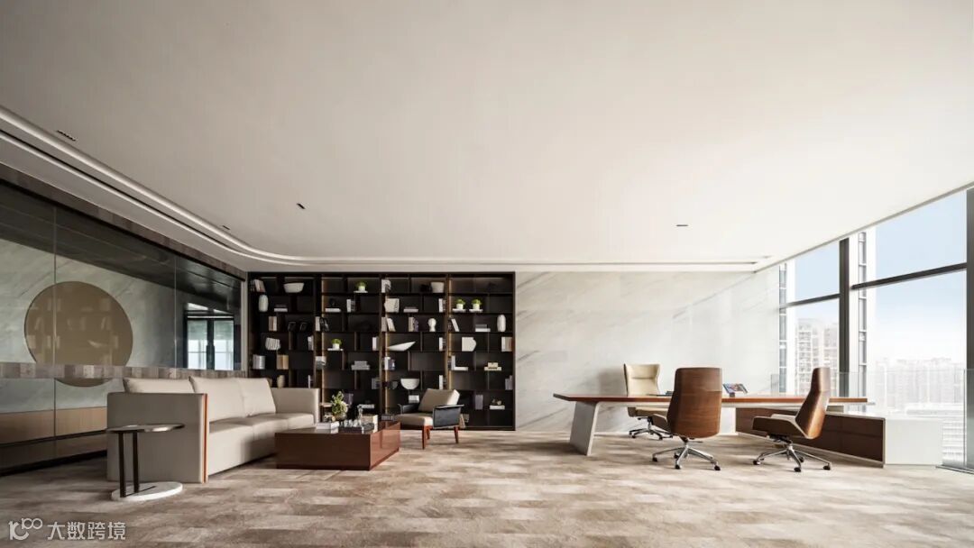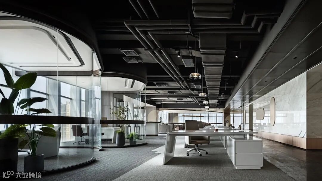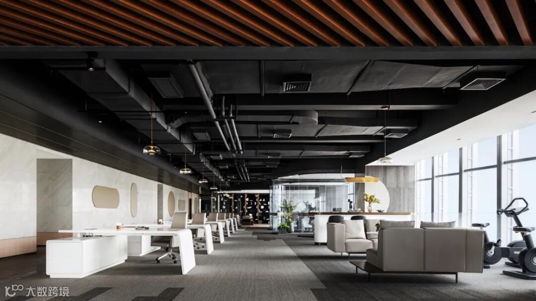 办公样板层位于大厦的16层,设计师选择深灰色作为办公空间的整体基调,白色、米色及啡色等色彩点缀其间,希望让人在此获得一种安静思考的心境。开放办公区去除传统高隔断的开放式设计,最大程度地确保了空间的灵活性和开放度,以满足公司办公和各种员工活动所需。绿色植物造景及盆栽散布在办公区的多个角落,营造出绿色、充满自然气息的办公氛围,意在让员工从紧张的工作状态中暂时脱离出来,体验自然的生机和活力。