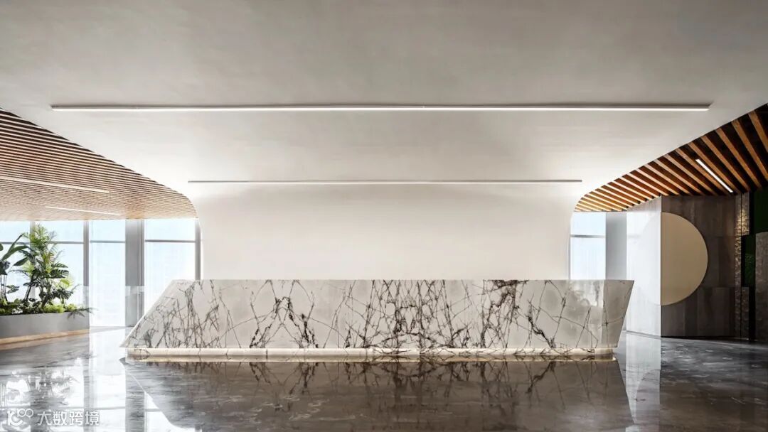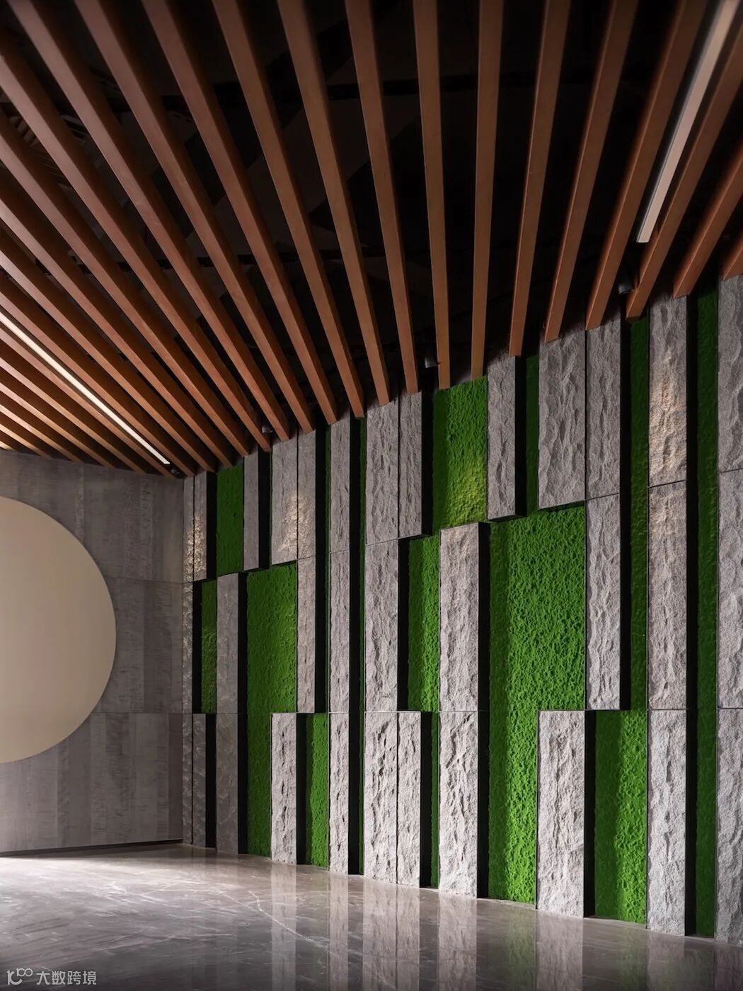大堂两侧的绿植与窗外的自然景观相呼应,让室内空间充满自然气息,同时,也消除了室内和室外的分界线。设计师运用节制的设计手法,着力营造舒适雅致的空间氛围,井然有序的平面规划,动线清晰,使用效率最大化。