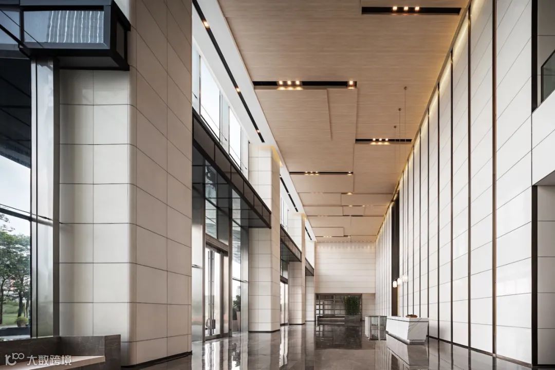华侨城创想大厦作为龙华区标志性的综合体建筑之一,戴勇设计研究室希望通过现代的设计手法,在高密度的城市之中为使用者创造一处高质量、舒适且生态自然的现代办公环境。