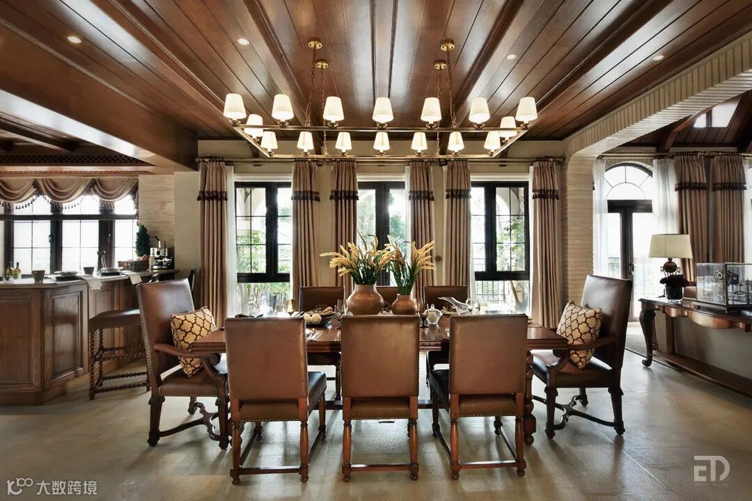 戴勇设计团队以美式乡村风格为主导,设计灵感源于旅行的经历。旅行途中大自然的风光,放松的心情让人更加向往探索未知的世界。在欧洲,当我们站在百年前的古堡前,感受经典建筑的魅力,古老的建筑虽然离时尚很远,却经历了时间的打磨,愈发显得真实,散发出独特的魅力。