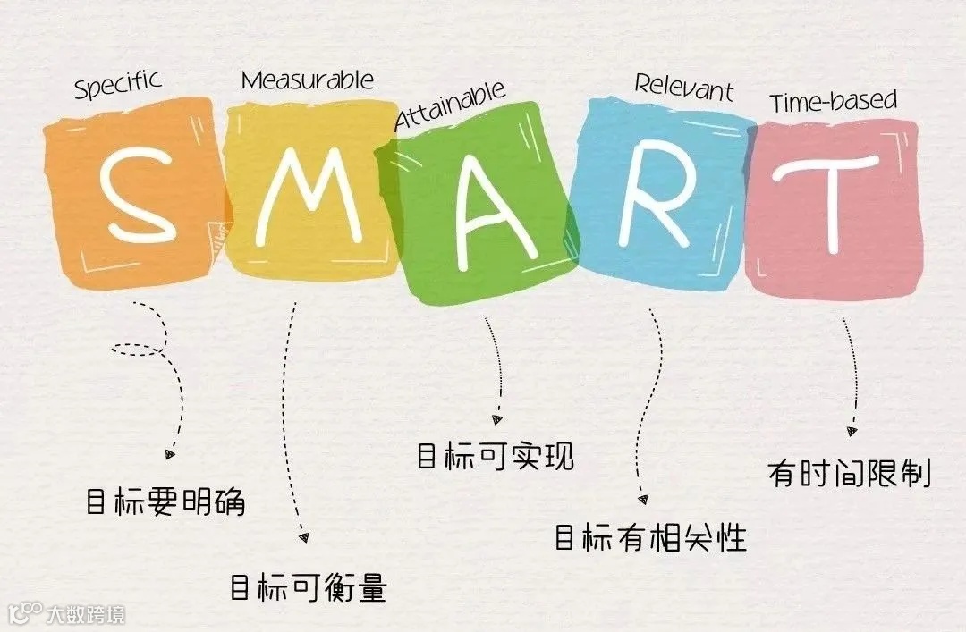 SMART的每个字母代表了一个单词,分别诠释了目标设计的五个方面: