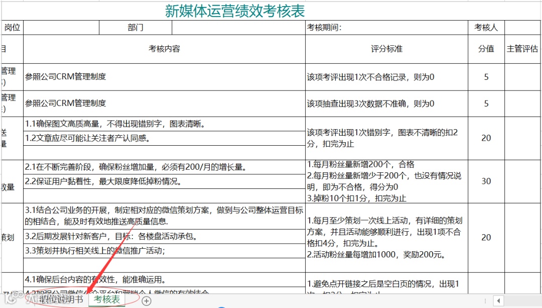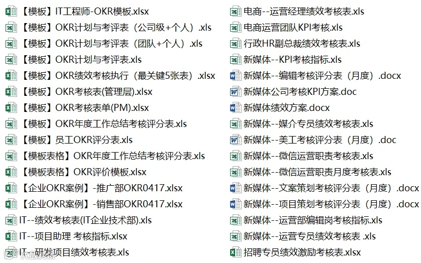 以下是为会员精选OKR考核表、互联网、新媒体考核表: