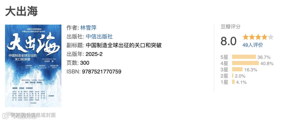 各界评价:“这是一本充满烟火气的出海‘航海日志’。林雪萍深入一线工厂与海外市场,用真实故事破解‘走出去’的痛点,堪称中国企业全球化的‘避坑指南’。”——福耀玻璃董事长 曹德旺
