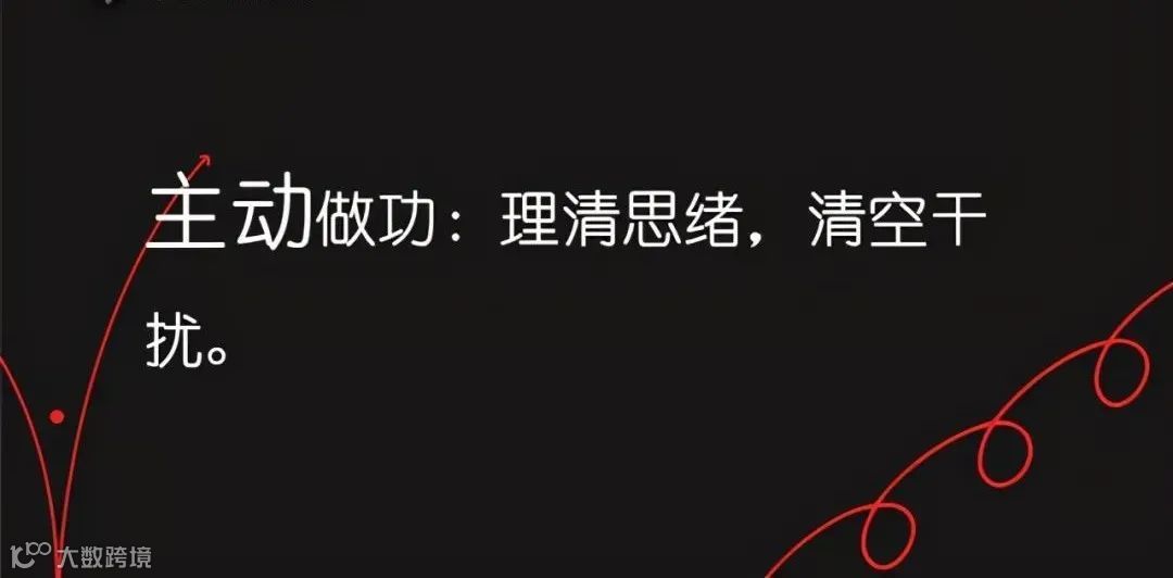 你不能等到生活脱离了你的掌控,才后知后觉的介入。你要每天都保持清晰的思绪,主动投入时间和精力,去理清你的情绪,理清你每天所做之事,理清你想要的是什么。我在未来大学里学到一招,叫做清空干扰。