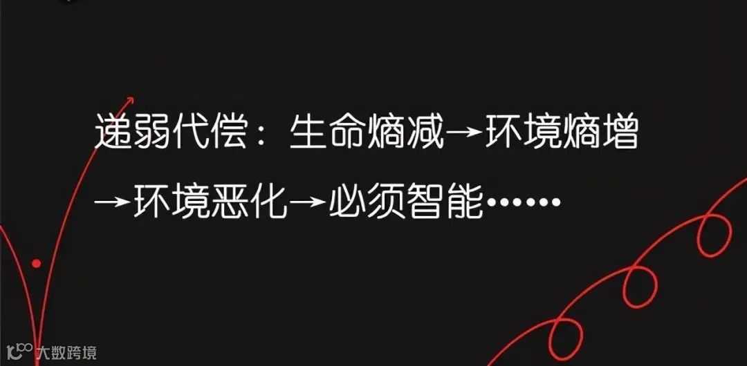 从此,生命走上了智能的进化之路。这一过程,也被王东岳老爷子称为递弱代偿。即生命的熵减过程,会加剧环境的熵增,于是环境会变得越来越恶劣,生命为了生存,为了获得足够的能量和物质,必须变得更加智能……