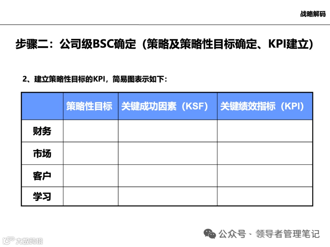 | 典型企业 | 中国电信(战略地图分解) | 华为(BLM战略工作坊) | 三星(CTQ质量特性分解) |