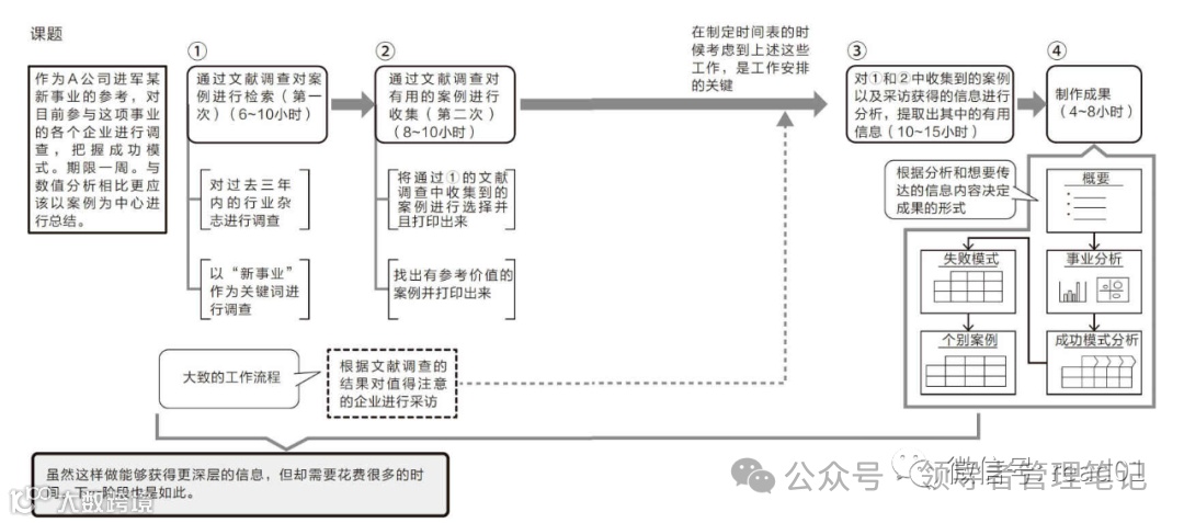 寻找是否有前辈做过类似的调查,向其询问“什么地方问题最大”“应该注意什么地方”(如果可能的话,最好能够拿到当时的最终成果物作为参考。但要注意不能被对方的结果影响到自己的判断)。