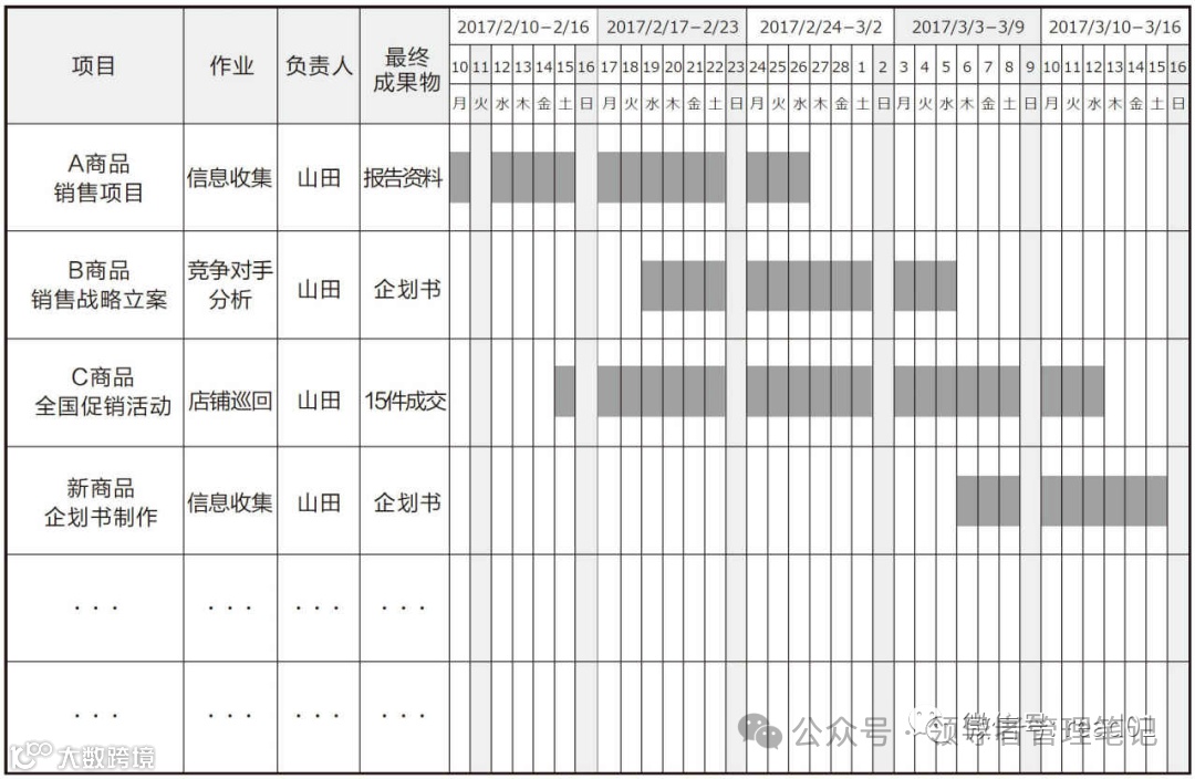 也就是在一张纸上将所有的作业项目、最终成果物,一览无遗地总结在一起