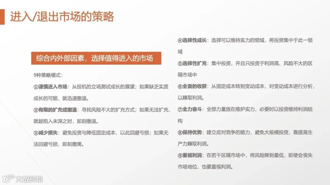 • 关键成功因素(KFS):识别产业核心要素(如高端制造的“研发能力”、零售的“供应链效率”),集中资源打造局部优势。