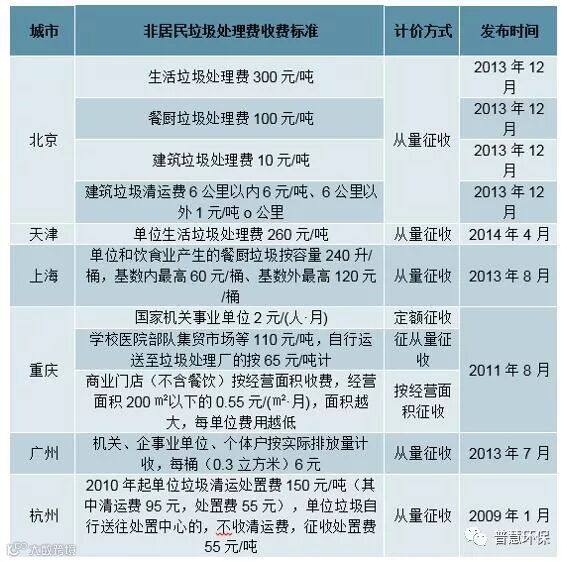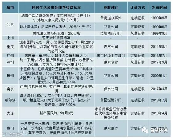 各地垃圾费:居民定额征收为主,征收率底,计量征收大势所趋
