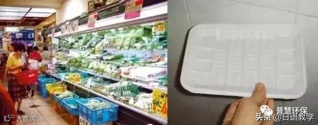 日本超市里的塑料盒被主妇们带回家,她们把菜拿出来后,会把塑料盒洗干净,自觉送会超市。