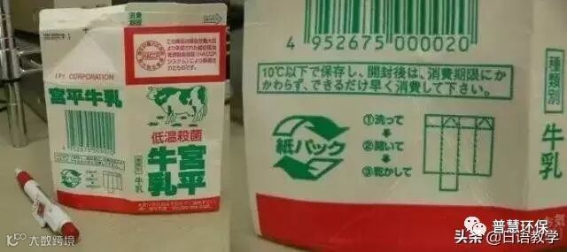 日本鲜奶多采用方形纸杯包装,这种纸杯所用的纸张,因属于优质纸的缘故,有较高的回收率。(右图就是三个步骤的示意图) 看图你就知道了,一个喝光的奶杯的处理步骤:1洗净,2剪开,3晾干。