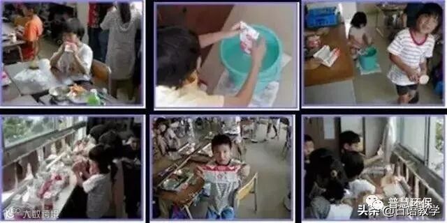 这里是一个日本小学里的孩子在清洗牛奶盒的过程,这样严格执行繁琐的清理过程,就是重要的素质教育。