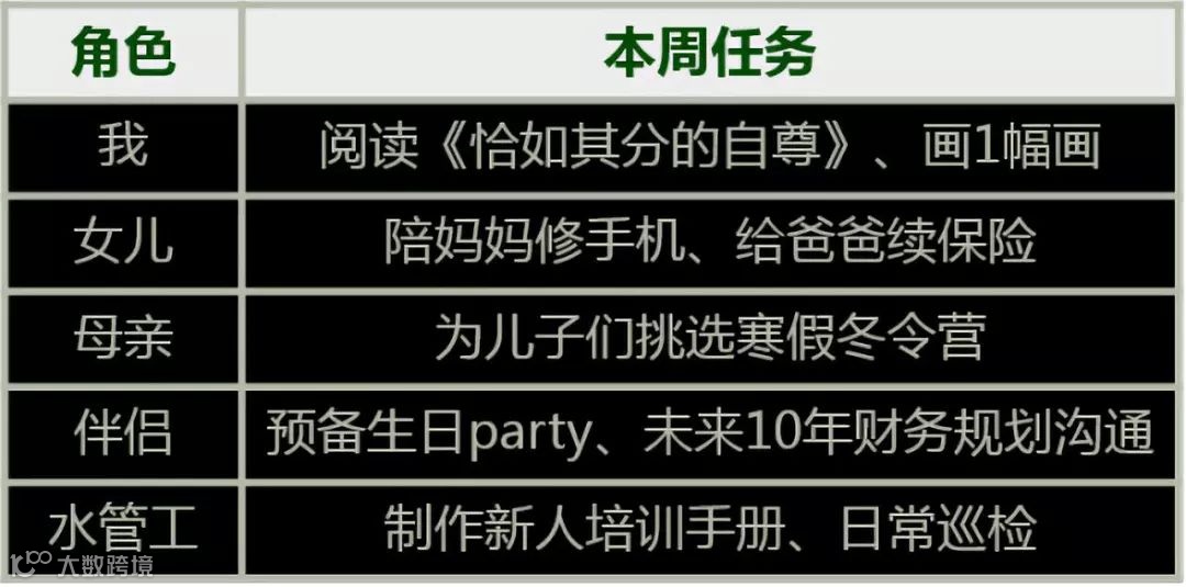 ② 然后写下每个角色本周的对应任务,如: