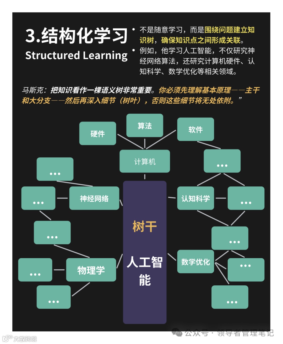 • 认知图谱化:为每个学习主题建立三维知识坐标(理论轴/实践轴/时间轴)