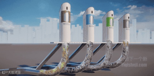 这款垃圾桶其实是由一个地上垃圾入口和地下的收集容器及隐藏式的控制器组成