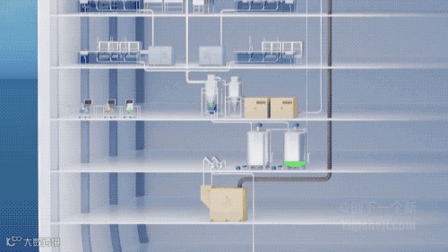 顺着垃圾管道进入地下的收集容器