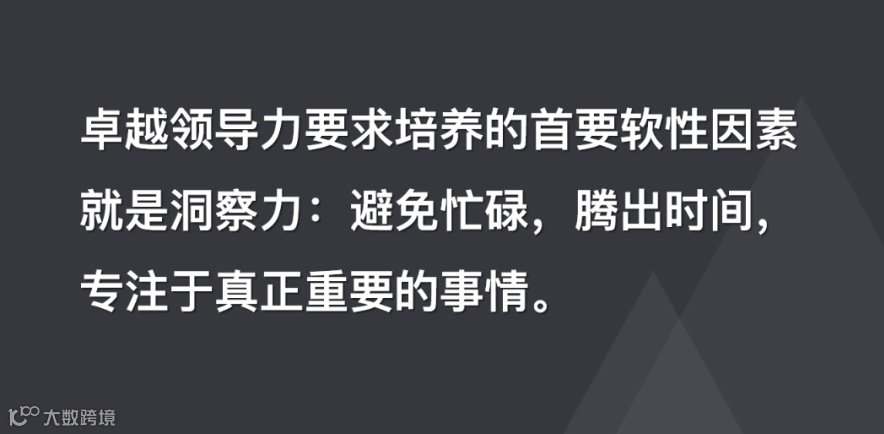 卓越领导力要求培养的首要软性因素就是洞察力:避免忙碌,腾出时间,专注于真正重要的事情。