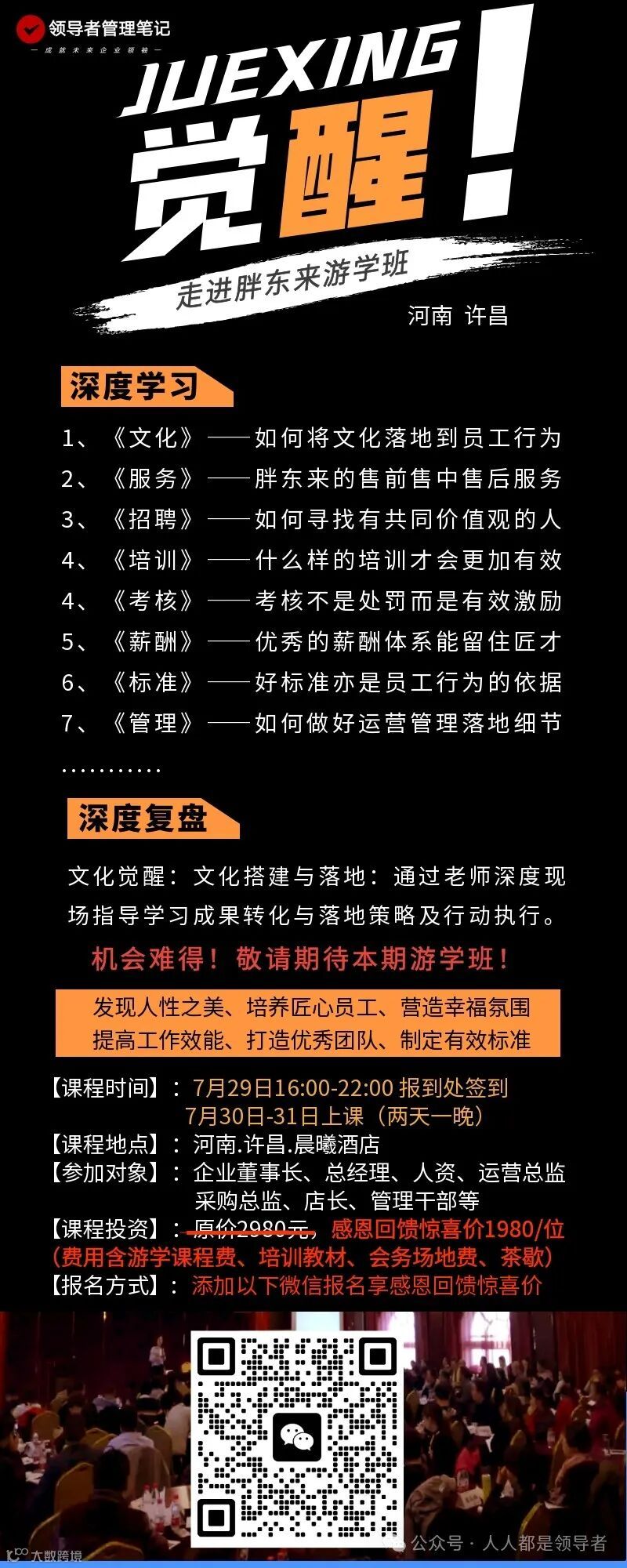 开课前 20天报名,享早鸟价6480元/人,还送华为资料大礼包、领导者管理U盘、领导者管理资料星球会员