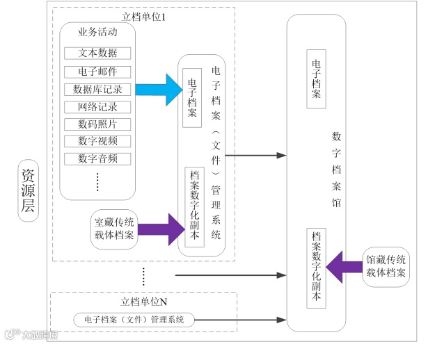 对于档案信息资源体系,着力推进各业务系统电子文件归档移交, 如开展电子发票及电子会计档案等专业电子档案管理综合试点,尝试 网站、微博、微信公众号等新媒体数字资源的归档。
