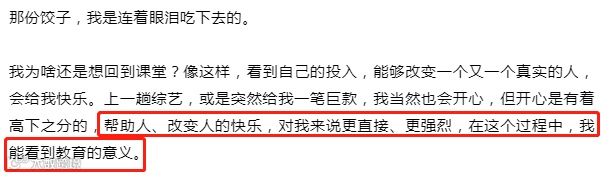 “如果有一天东方甄选离了我不受影响,我也有了生活保障,我可能会找一个经济欠发达的地方去支教,回到熟悉的地方。