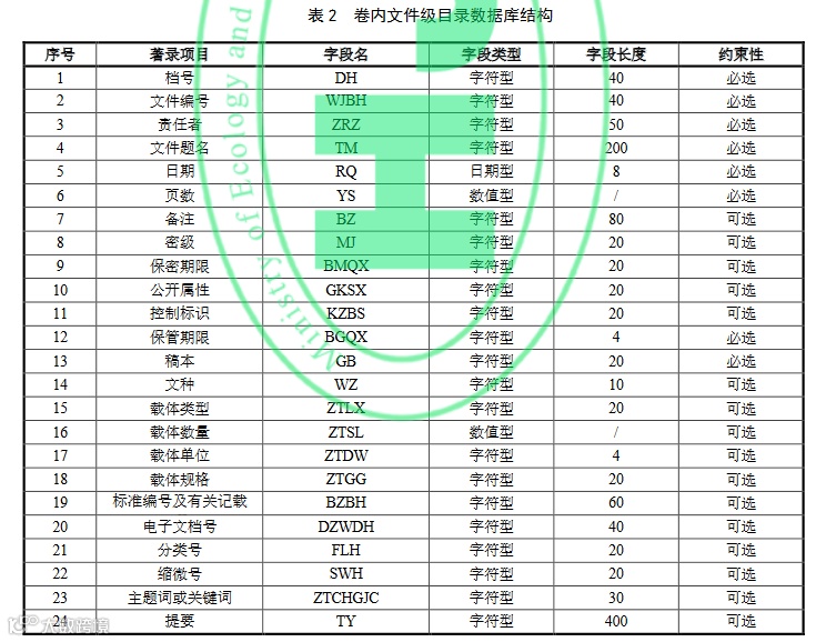 为满足生态环境档案管理需要,应当建立符合实际需求的结构化关系型机读目录数据库,且目录数据库应当具有可扩展性。
