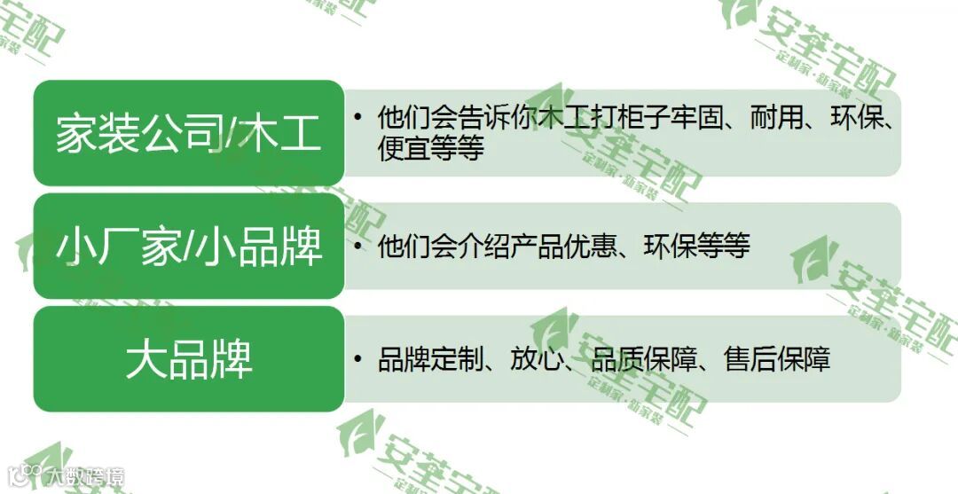 首先,由营销总监张宗源进行介绍目前行业中存在的问题。通过和业主朋友的交流,发觉问题主要存在于三个方面:木工现场打柜子;小工厂定制;大厂/品牌定制。