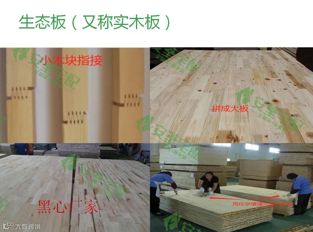 然后通过对比市场上的生态板和万禾香木板进行对比,揭露了一些生态板容易出现的问题。