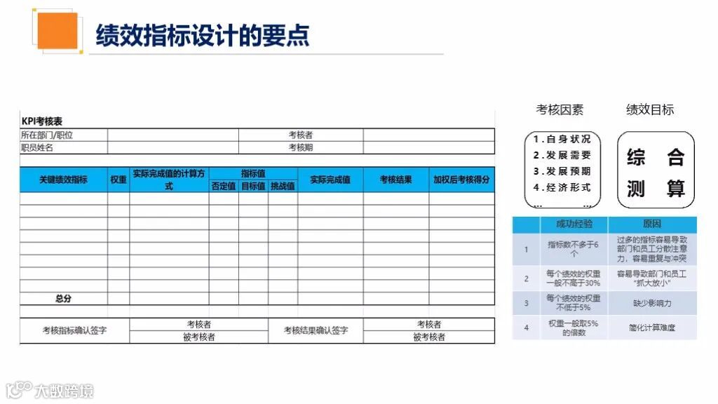 本套资料共102页PPT,包含绩效指标设计、绩效考核标准设计、绩效管理制度、绩效考核结果应用、绩效监控体系、绩效辅导面谈等等。制作精美,可自学,可内部培训。