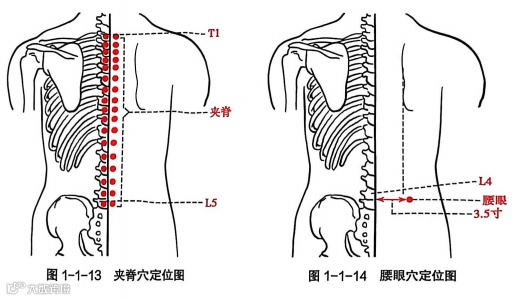【定位】第1胸椎至第5腰椎棘突下两侧,后正中线旁开0.5寸,一侧17穴。