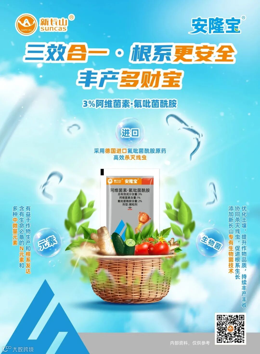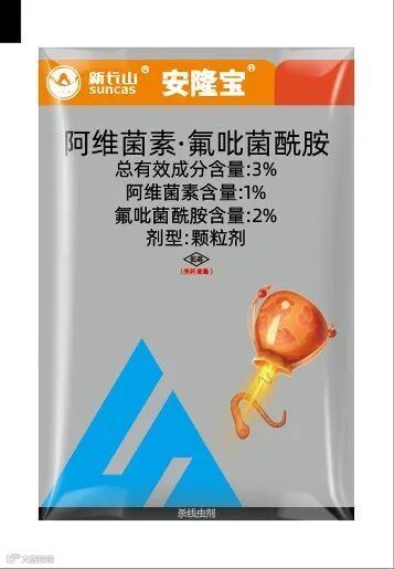 新长山集团联合德国拜耳开发了含3%阿维菌素·氟吡菌酰胺的颗粒剂——安隆宝。