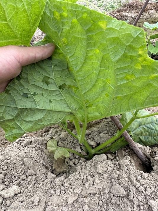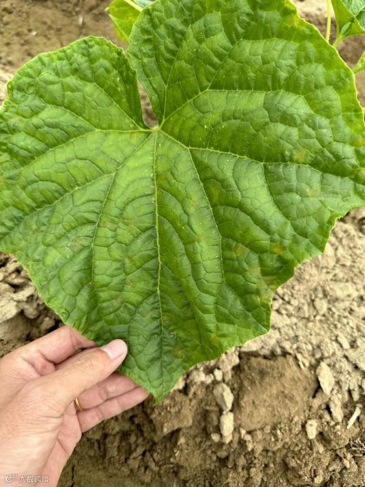 霜霉病是瓜果类常见病害,其典型症状有:叶部正面病斑处显黄色,叶部背面初期有水洷状,严重会起大量白色霉层。且一般瓜类上霜霉病、角斑病会混发,用药用的不对,极易造成反复侵染,造成黄叶落叶,后期产量损失很大。