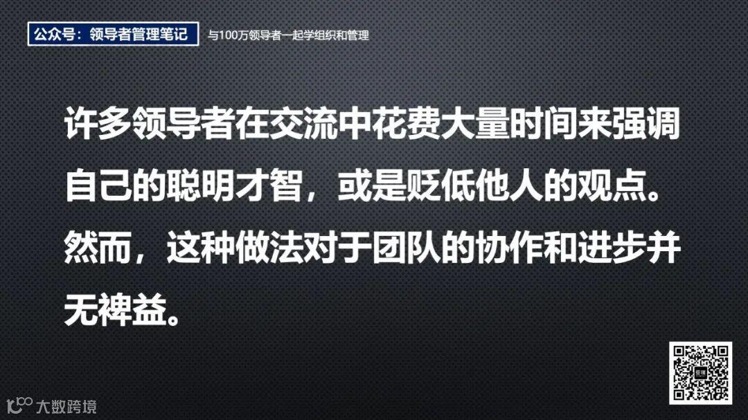 领导者需要学会倾听和尊重团队成员的意见,鼓励创新和协作,以及关注团队的整体目标和成果。只有这样,我们才能摆脱“炫耀才智”的陷阱,真正履行领导者的职责,推动团队朝着更加积极、有效的方向发展。