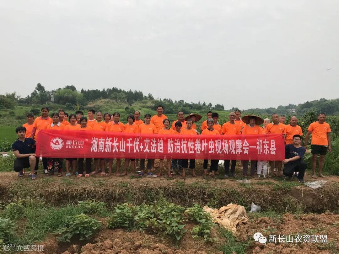 6月24日,新长山在衡阳祁东召开“抗性卷叶螟防治方案”观摩会,通过线上、线下联动方式,向各位农户、经销商展示千伏®+艾法迪®优异防效。