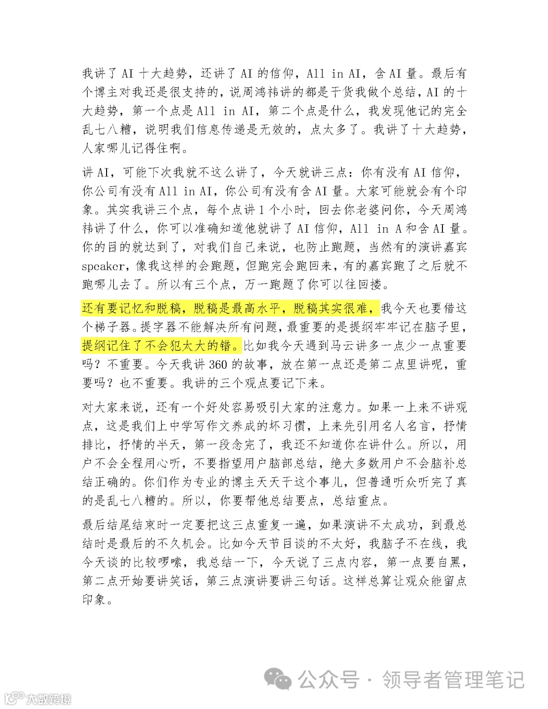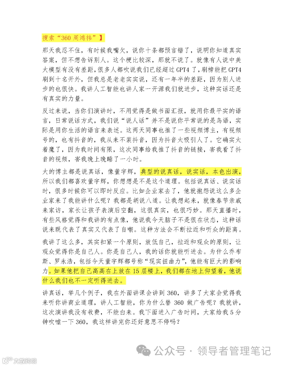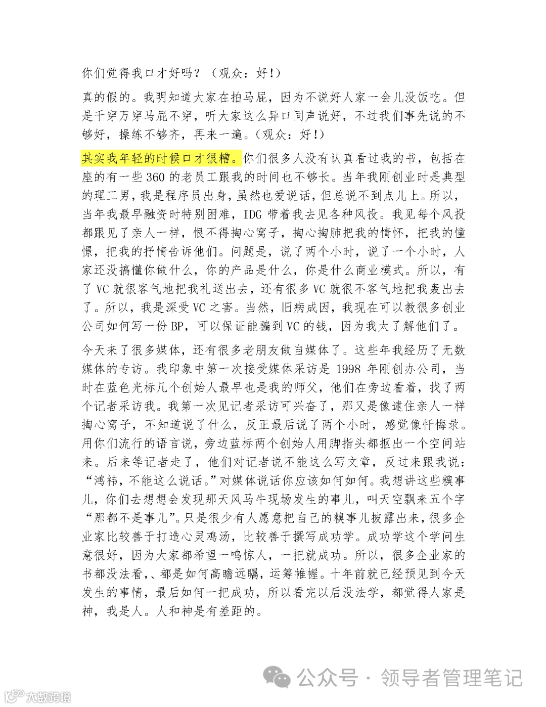 1 月 12 日,360 周鸿祎《你也可以好口才——如何演讲》直播 3 小时金句频出,干货满满,创业 20 年压箱底演讲技巧,实用性、实战性极强!3 万字完整版吐血整理,全网唯一无损版!送给和我一样爱学习的你,建议收藏!