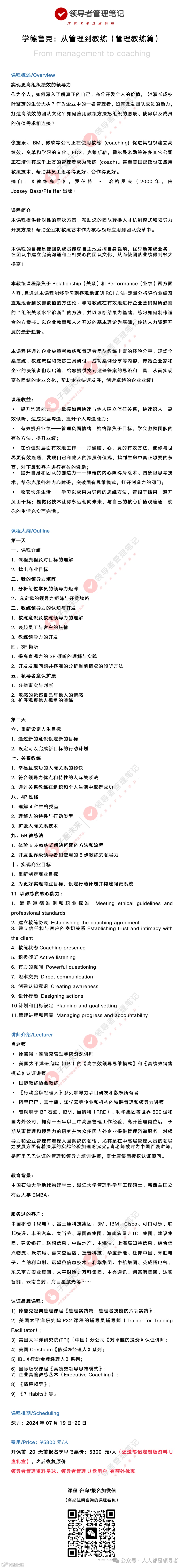 三峯经营了一个《领导者管理资料》“知识星球”,主要是面向企业管理人员、领导者,以及希望成为一流领导者的朋友提供“管理&领导力”相关的资料与咨询沟通,目前会员超过1900人,资料超过2600份,并且每天都在更新。有兴趣的读者可以扫描下方二维码了解,目前加入《领导者管理资料》“知识星球”可以获得“职场破局、时间管理、阿里管理三板斧、易经智慧、思维工具、沟通能力等在内的10份付费视频课程”。