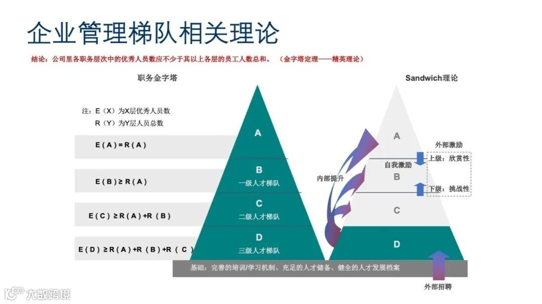 管理梯队发展是企业人才战略的重要组成部分,旨在培养和储备未来的管理人才。其理论基础包括“职务金字塔”和“Sandwich理论”。“职务金字塔”强调各层级优秀人员数量的重要性,而“Sandwich理论”关注上级和下级之间的互动关系。