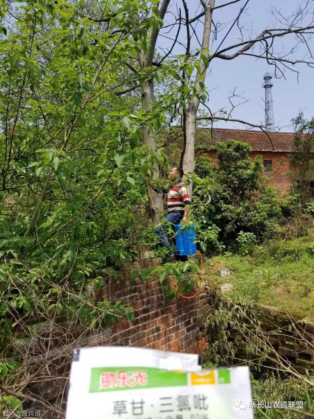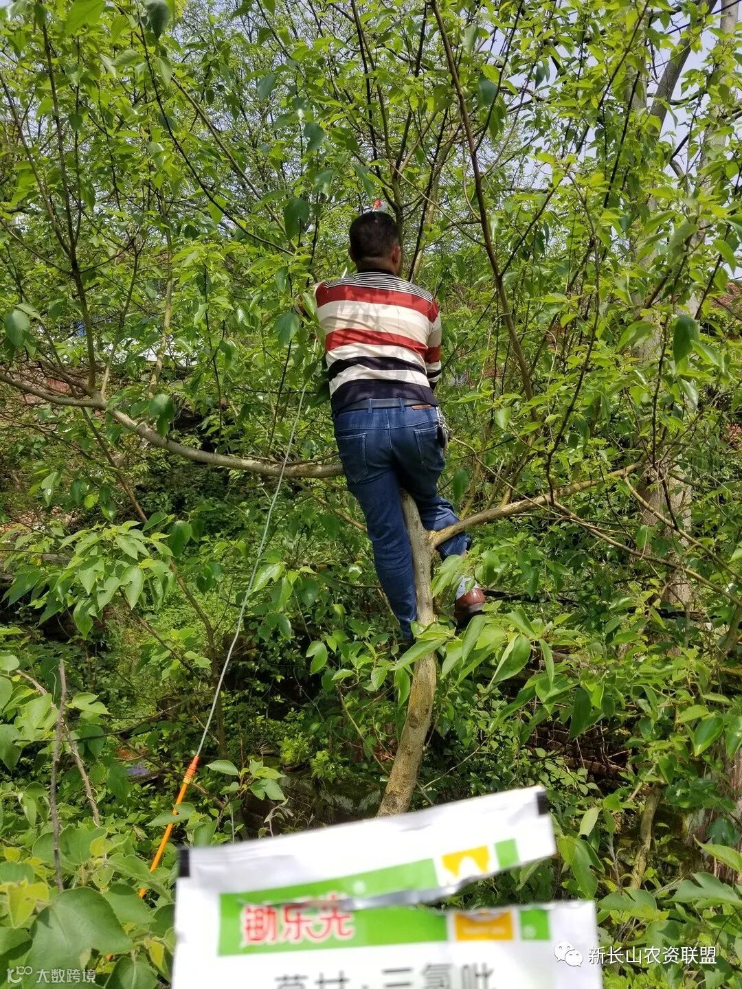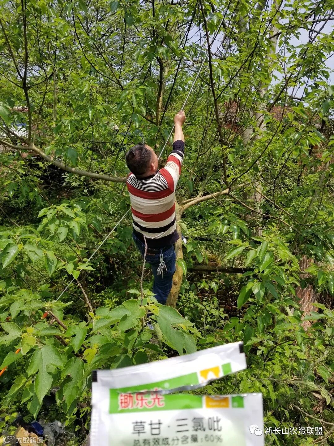 为了把药打透彻,肖哥亲自爬上了这棵大树,看得我们心惊胆战,都为他捏把汗!