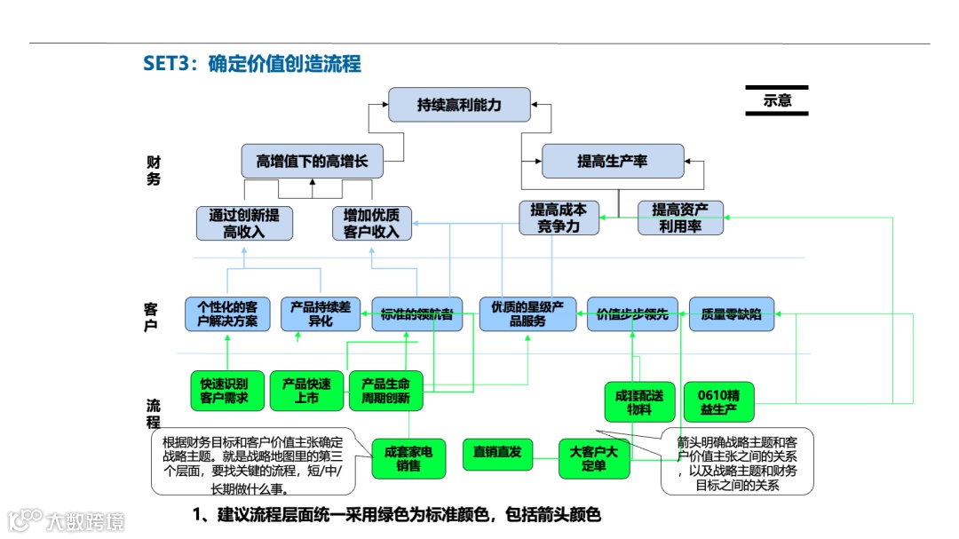 识别“关键价值流程”(如IPD、ISC集成供应链),通过流程成熟度评估(PCMM)持续优化;