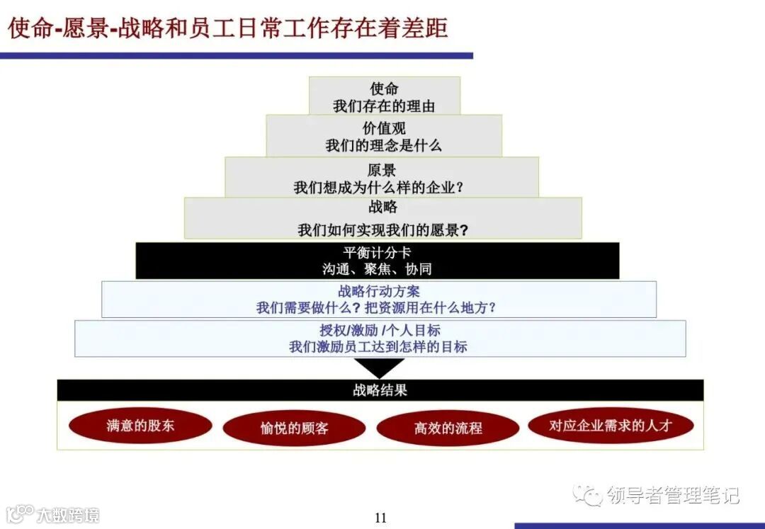 通过BSC,组织能够将“我们为什么存在”(使命、“我们想成为什么”(愿景)、“我们的行动计划”(战略)与员工“我需要做什么”(授权/个人目标)有效对接。
