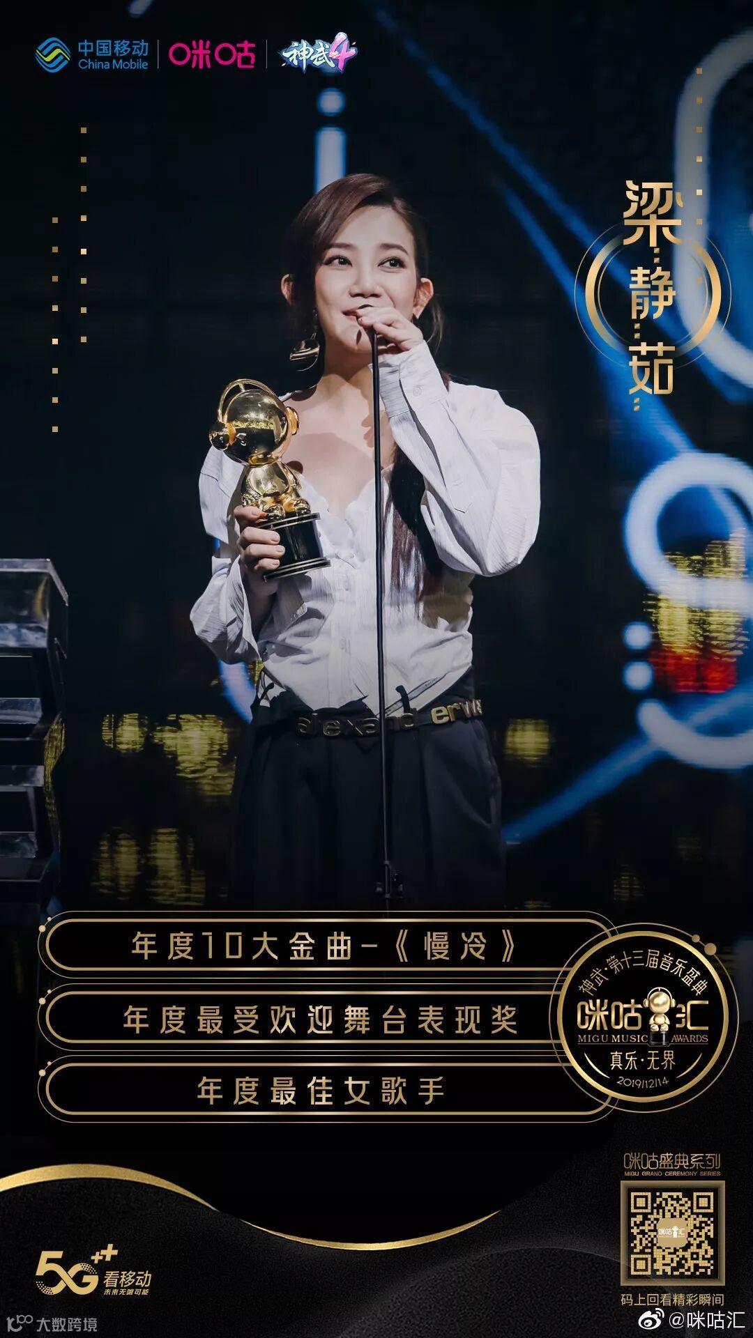 恭喜 @梁静茹 荣获“咪咕汇”三项大奖!
