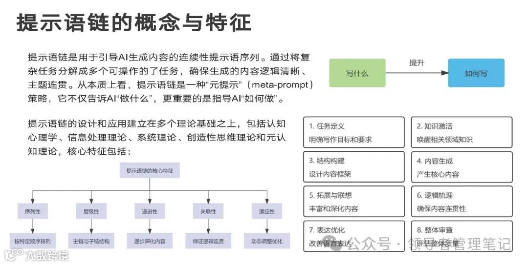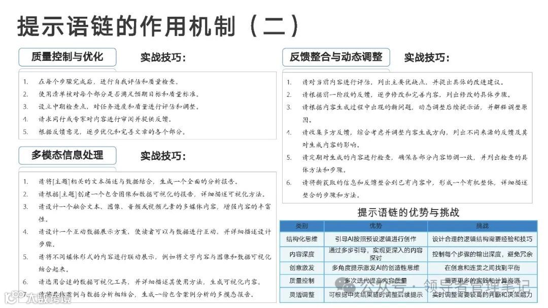 5,提示语设计:基本结构与类型:如何构建有效的提示语、核心与进阶技能:提示语优化的策略与技巧、提示语链:作用机制与设计原则。