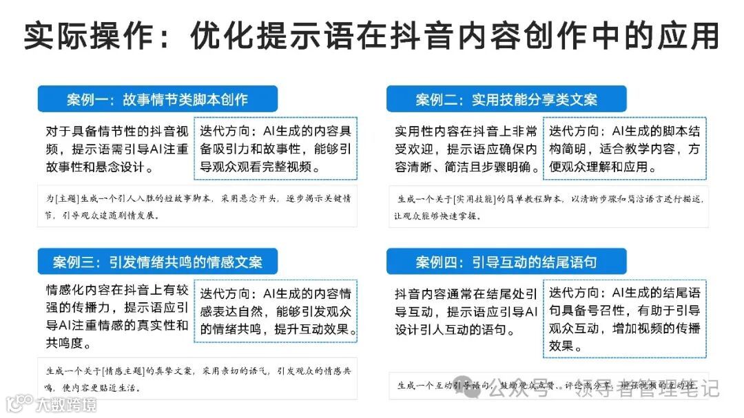 9,应用场景与案例分析:内容创作:文案、营销策划、品牌故事等,社交媒体不同平台的优化策略。